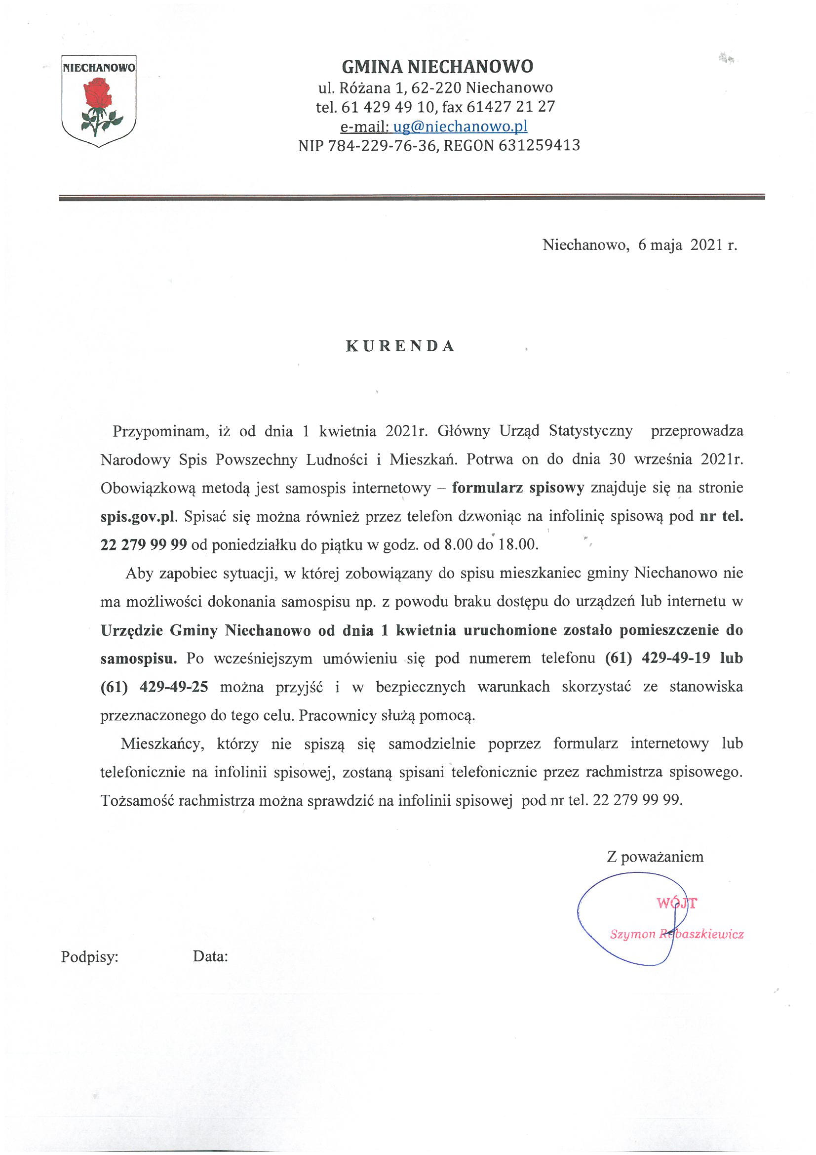 Kurenda w sprawie spisu powszechnego